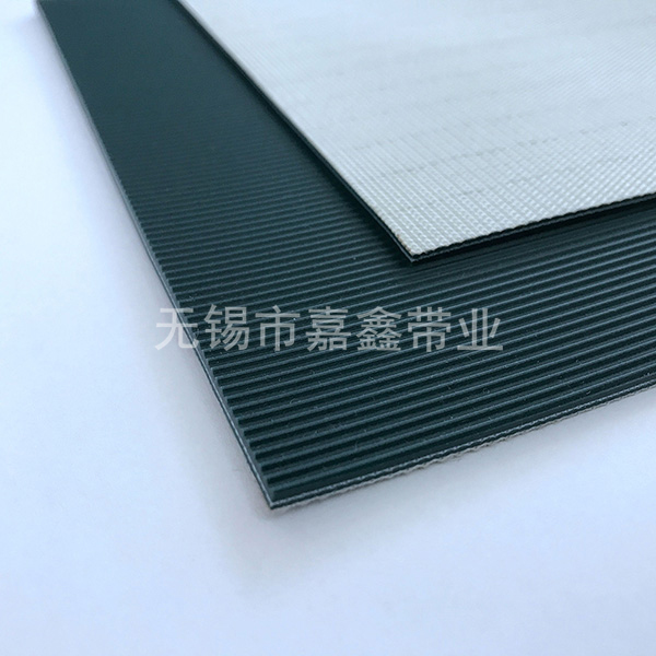 1、 墨綠色直條紋輕型輸送帶初張力太小。輸送帶離開滾筒處的張力不夠造成輸送帶打滑。這種情況一般發生在啟動時,解決的辦法是調整拉緊裝置,加大初張力。